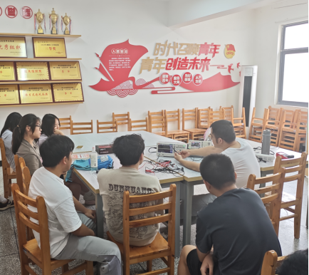 理论讲解结束后,进入了同学们最为期待的实操环节。汪润泽示范了波音发生器和示波器的操作流程,从仪器的开机预热、参数设置到信号的连接与测量,每一个步骤都讲解得细致入微。在操作过程中,他还结合实际电路,向同学们展示了如何利用这两款仪器来检测电路故障、分析信号质量。同学们纷纷围在仪器周围,仔细观察老师的操作,不时提出自己的疑问。