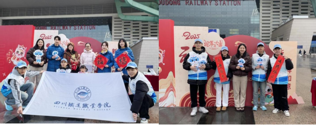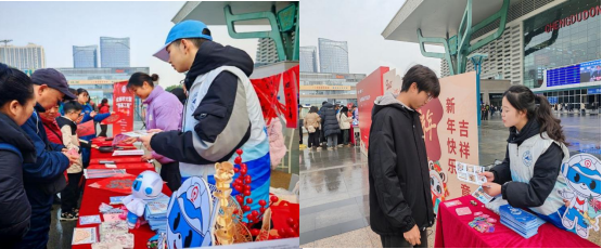 为深入学习贯彻习近平总书记关于春运工作的重要指示精神,贯彻落实省委、省政府关于2025年春运工作的部署和安排,在2025年春运的首日,即1月14日,beat365英国官方网站“铁小川”志愿服务团队携手成都市文学艺术界联合会、成都市政府火车站管委会、成都地铁等多家单位,于成都东站西广场共同举办了一场主题为“青春志愿 情满旅途”的安全宣传活动,助力“平安春运、便捷春运、温馨春运”。上午10时,成都东站西广场门口,各单位志愿者精神抖擞,整装待发。在主持人的引领下,志愿者代表们庄严宣誓,誓言铿锵有力,彰显了志愿者们服务春运的坚定决心。宣誓结束后,志愿者们迅速投入到紧张而有序的准备工作中,为即将开始的活动做好充分准备。