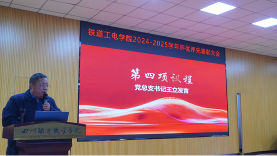 党总支书记王立向受到表彰的集体、个人表示祝贺,并向全体学生提出三点期望:一是要永葆进取之心,自觉加强学习,不断增强本领;二是要常怀感恩之情,用实干诠释青年担当;三是要胸怀远大抱负,把个人理想融入国家发展大局。