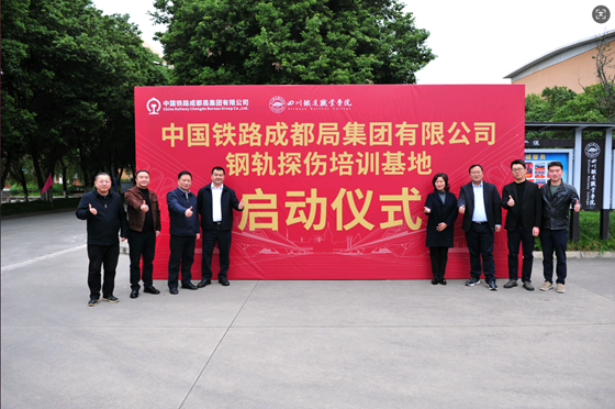 随后,校企双方共同为钢轨探伤基地揭牌。此次启动仪式标志着学校在产教融合道路上迈出了更加坚实的一步,后续,校企双方将持续推进更加完备、设施齐全的钢轨探伤培训基地的打造,为铁路安全事业持续赋能,助力中国铁路安全高速运行,并探索实现对川藏铁路等国家重大项目的推动作用。
