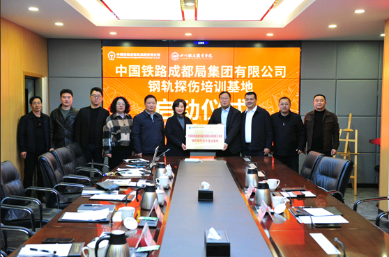 2024年11月19日,中国铁路成都局集团有限公司钢轨探伤培训基地启动仪式在beat365英国官方网站举行,中国铁路成都局集团有限公司成都工务段党委书记肖斌,职培部副部长刘明,beat365英国官方网站党委副书记、院长赖芳,副院长黄恩兴以及相关部门负责同志共同出席启动仪式。