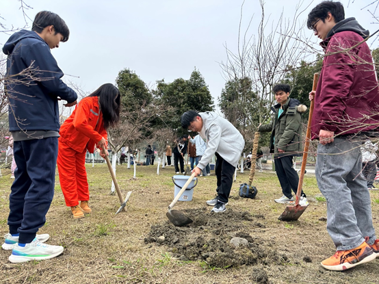 春回大地,万物复苏。为推动美丽校园建设,3月12日我院辅导员戴璐组织领航学长、2023级新生代表开展了一场别开生面的植树劳动实践教育活动。