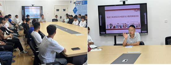 为贯彻落实党的二十届三中全会精神,深刻领会习近平总书记关于民族团结进步的重要论述,铸牢中华民族共同体意识,促进少数民族学生成长成才,9月11日上午,铁道工电学院在2教4楼会议室举办2024级新生少数民族座谈会。学院党总支书记张果,辅导员段雪梅、刘奥及2024级少数民族新生参加,座谈会由刘奥主持。