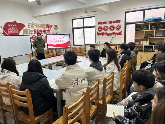 张洋围绕“高质量发展”“科技创新”“民生福祉”“教育领域”等关键词讲起全国“两会”。强调入党积极分子要积极关注两会动态,结合自身实际,在学习“两会”的过程中要有所感、有所悟;其次要结合自身专业,探讨如何在新一轮科技革命中发挥青年力量,助力国家科技自立自强;最后鼓励同学们积极适应社会变化,提升综合能力,以更加开放的心态迎接就业挑战。