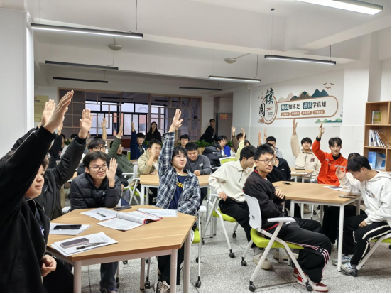 在交流互动环节,胡林同学围绕党的基础理论及党员义务等内容进行现场提问。同学们踊跃参与,积极举手抢答,现场气氛热烈。通过选择题、判断题等多元互动形式,大家在寓教于乐中深化了对党的理论及初心使命的理解,展现了扎实的理论素养和积极向党组织靠拢的决心。