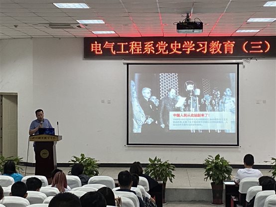 电气工程系于2021年5月25日组织学生在学术报告厅参加讲座(三):社会主义革命和建设时期。本次讲座由电气工程系副主任傅永华主讲。