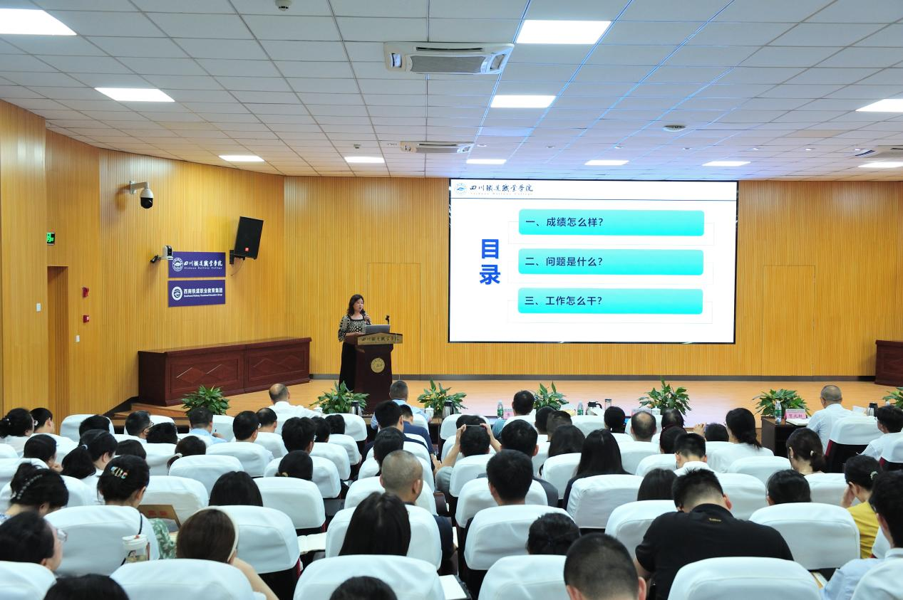7月10日,学校在成都校区学术报告厅召开年中工作推进会,党委班子成员出席会议,会议由党委委员、纪委书记池秋平主持。全体中层干部和单位(部门)内设机构负责人、专职组织员、基层党支部书记、学术委员会成员、教学督导员、教研室主任、辅导员及新入职教职工参加会议。
