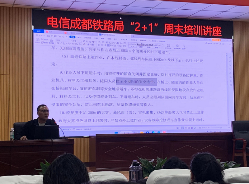 3月19日,电信工程学院在学校学术报告厅面向全体“2+1”学员开展了专题安全知识培训,培训由中国铁路成都局集团有限公司成都电务段职教科工程师罗世成授课主讲。