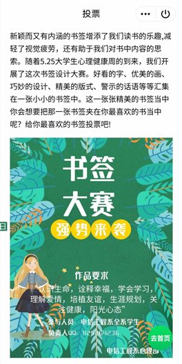 本次大赛,旨在通过设计书签的方式培养学生积极健康的审美情趣,鼓励学生在书签元素设计中融入个人性格特点和大学生活力风采。使学生借助书签构建读书氛围,释然个人情绪压力,寻找心灵的共鸣知己,培养多彩的兴趣爱好,追求奋斗青春的方式,提高个人的综合素养。