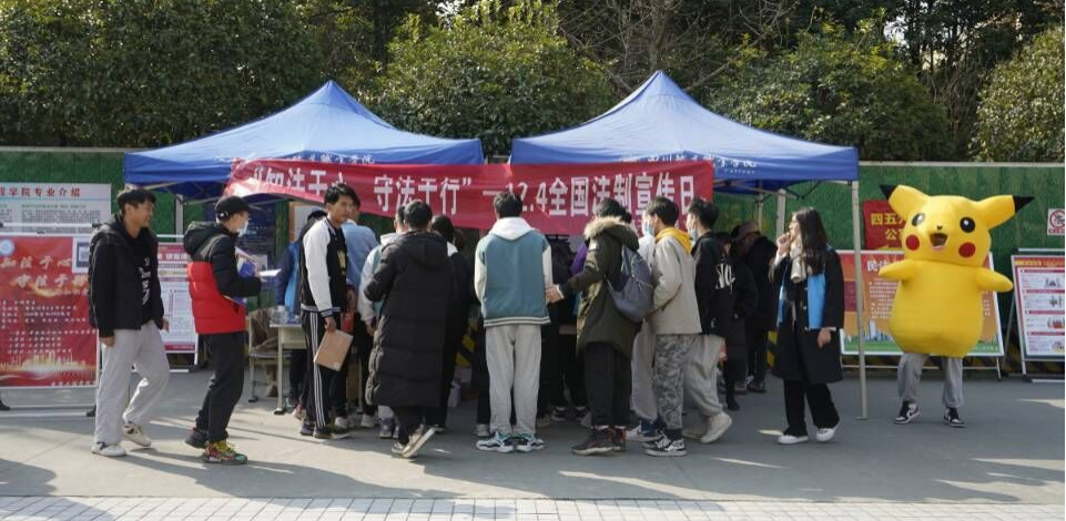 为更好地迎接我国的第八个“国家宪法日”,此次 主题教育系列活动电信工程学院以全校师生为落脚点持续展开。我院制作了宪法、民法典的系列宣传海报展板,摆放在学校食堂对面;并于12月1日开展了法律知识答题活动,全新的活动体验使前来参与答题的师生络绎不绝,并以此活动为契机向师生发放了宪法、民法典学习手册。同时积极拓展师生参与途径,学生扫描宣传海报二维码即可参与12月6日的“知法于心 守法于行”法律知识竞赛。切实发挥以赛促学、以学促知的作用,突出宪法宣传周主题,创造集体学、反复学的良好参与环境,在全校营造了宪法学习的浓烈氛围。
