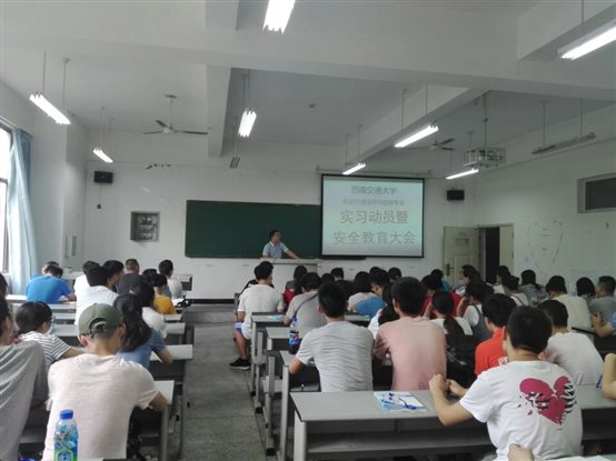 7月14日,西南交通大学信息科学与技术学院轨道交通信号与控制专业学生来我院开展实习。beat365教师杜中彦、周莹、陈龙、张晓鹏,西南交通大学实习领队教师谢刚及82名学生参加了实习动员及安全教育大会。