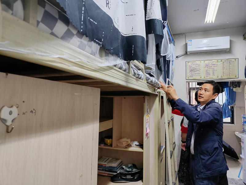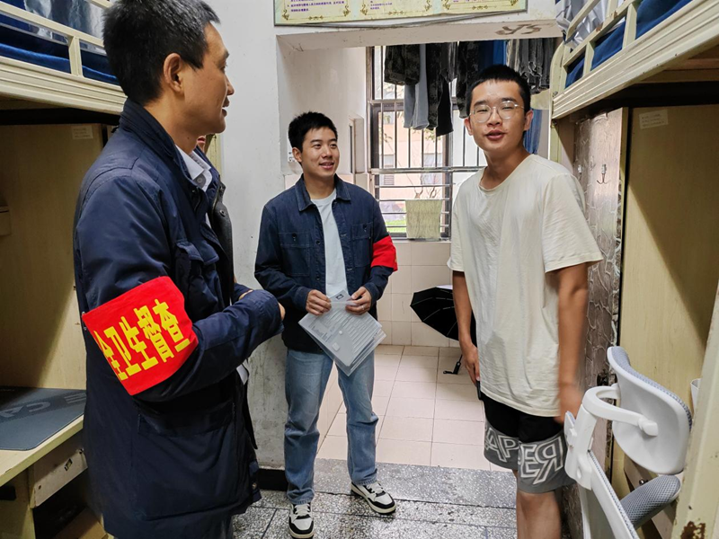 本次检查全面覆盖所有在校学生宿舍。重点排查宿舍是否存在违章电器使用、室内吸烟、私拉乱接电源线等宿舍安全隐患;提醒学生假期离校断电锁门、看好贵重物品、平安准时返校并注意应对温差变化和季节性感冒。走访检查学生宿舍安全的同时,与国庆留校同学交流,了解留校学生学习生活状态及国庆假期安排,引导学生保持良好作息习惯,让假期更加充实有意义。