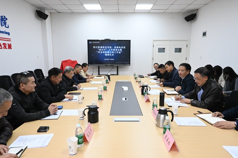 11月8日,学校与成都电务段“结对子”工作推进会暨“邓发明联锁大师工作室”揭牌仪式在电信工程学院举行。成都电务段副段长李恩品、职教科科长曾尚斌、信息技术科副科长(联锁主任)邓发明等相关人员,副校长黄恩兴、电信工程学院班子成员及相关教师代表出席会议。