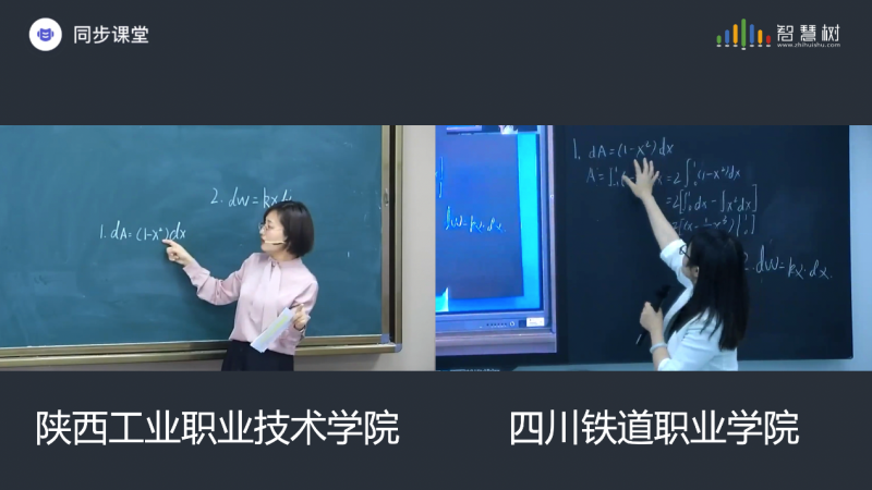 本次同步课堂由陕西工业职业技术学院傅霞老师主讲,前期beat365李娟老师与对方课程负责人段瑞老师多次沟通,结合双方授课进度和专业特点,傅霞老师最终将授课内容确定为《定积分的应用》。课堂上,傅老师以高铁变轨时“轨道曲线”为案例引入,介绍了微元法,结合图形总结几何形状通常有条、带、段、环、扇等几种取法,教学内容形象生动。学生积极思考、互动交流,课堂设计了练习环节,两校学生们在云端课堂中,积极分享、讨论热烈,形成了浓厚的课堂氛围。