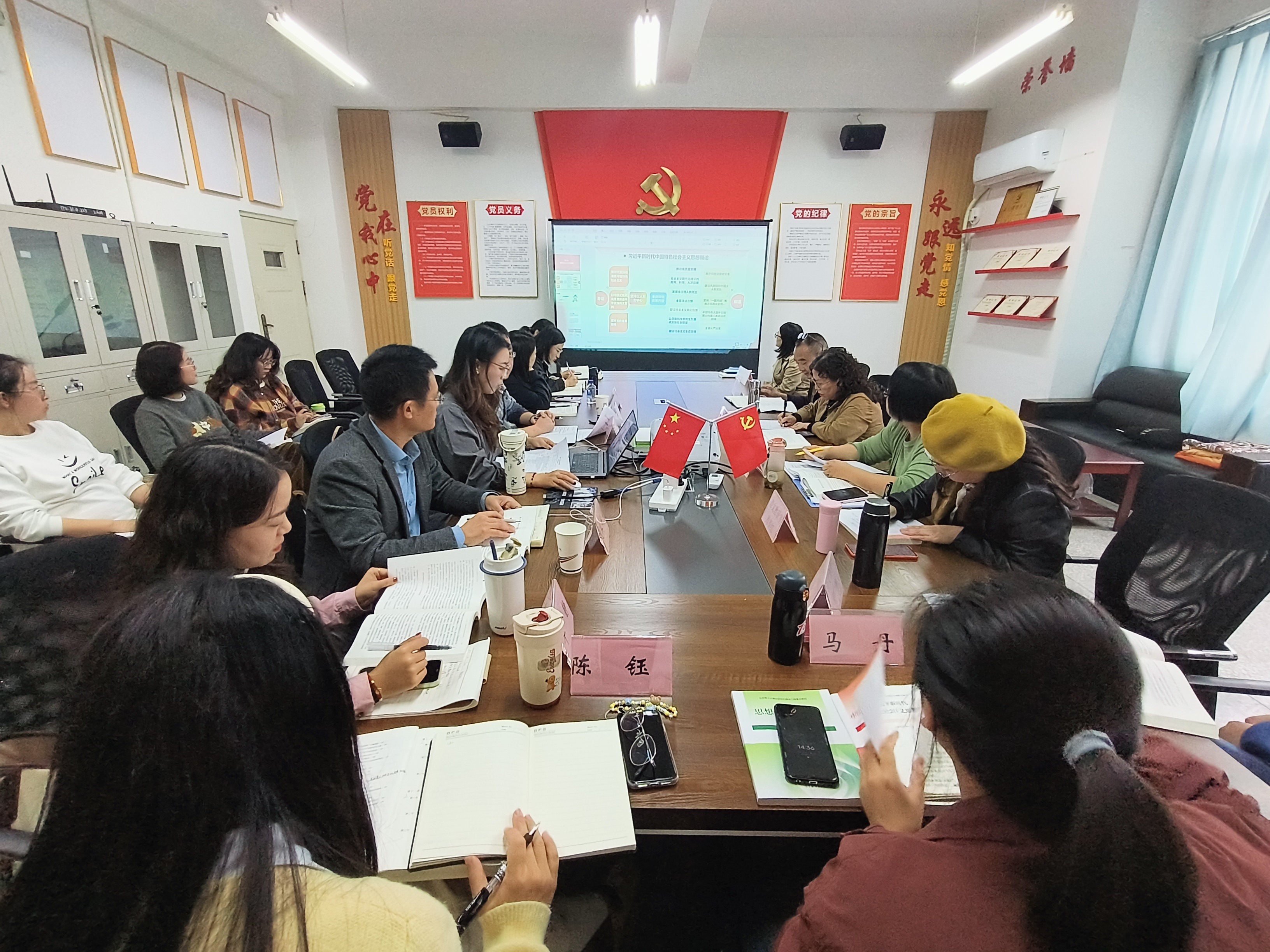 为充分发挥课程思政与思政课程协同育人作用,进一步推进学科深度融合,10月21日下午,公共教学部语文教研室与马克思主义学院在2404会议室开展联合教研活动,就如何建设社会主义文化强国、提升教学水平等话题进行了深入交流与讨论。