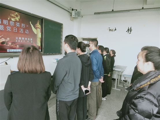天地英雄气,千秋尚凛然。为缅怀先烈伟绩,铭记光辉党史,大力弘扬爱国主义精神,深入开展党史学习教育,根据学院党委组织部的通知要求,公教部党支部支委会结合实际,于2021年4月8日13:00在2502教室进行“清明祭英烈”主题党日活动,回顾党的历史,缅怀烈士功绩,重温入党誓词,牢记初心使命。