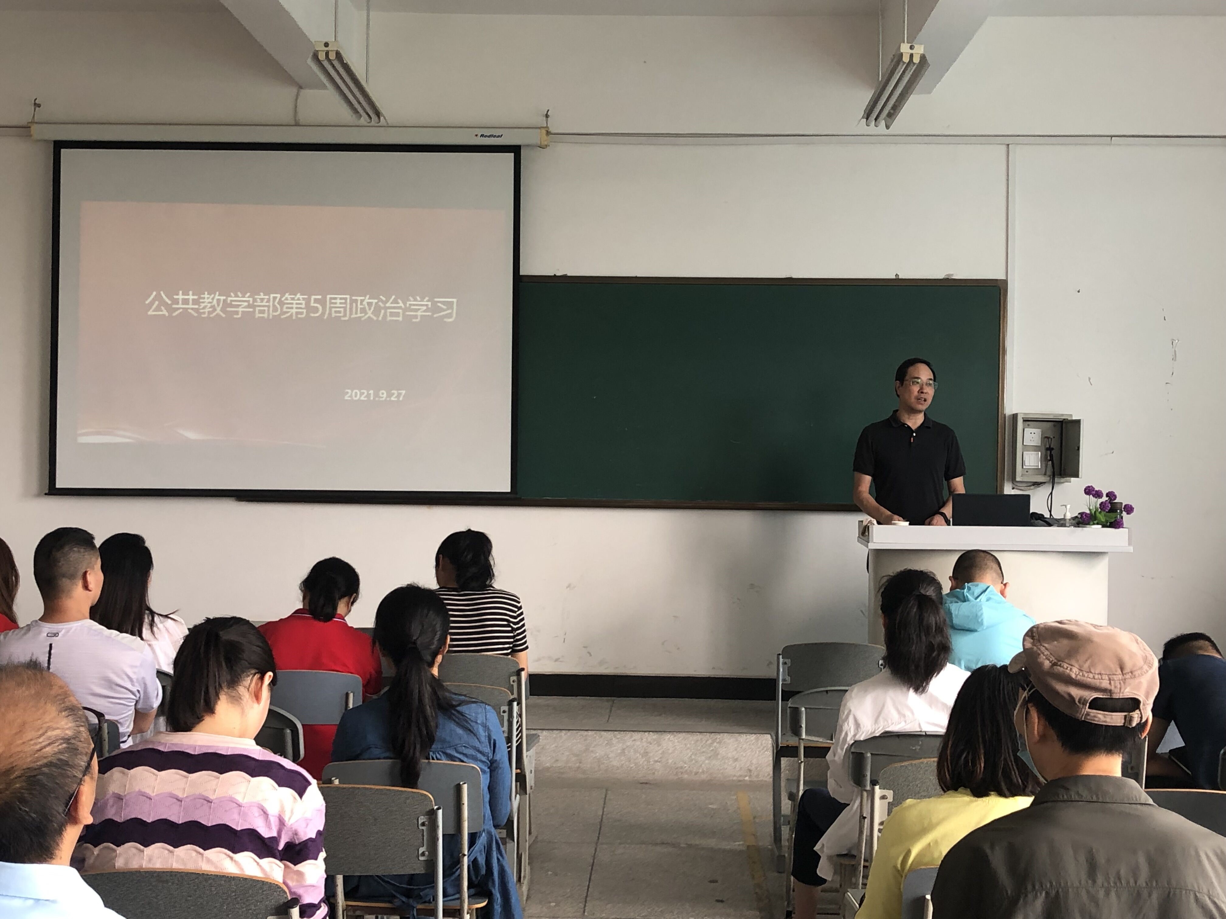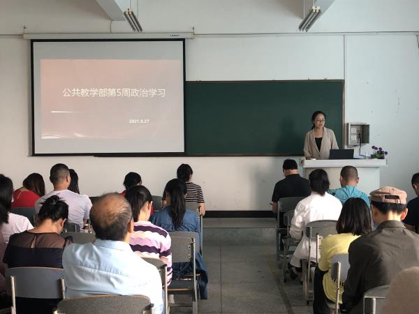 为深入学习习近平新时代中国特色社会主义思想,扎实开展党史学习教育,根据学校党委宣传统战部对9月政治理论学习要求的通知,结合公共教学部实际情况,部门于2021年9月27日,在2521召开第五周政治学习。会议由公教部副主任杨伦军主持,部门全体教师参与了此次学习。