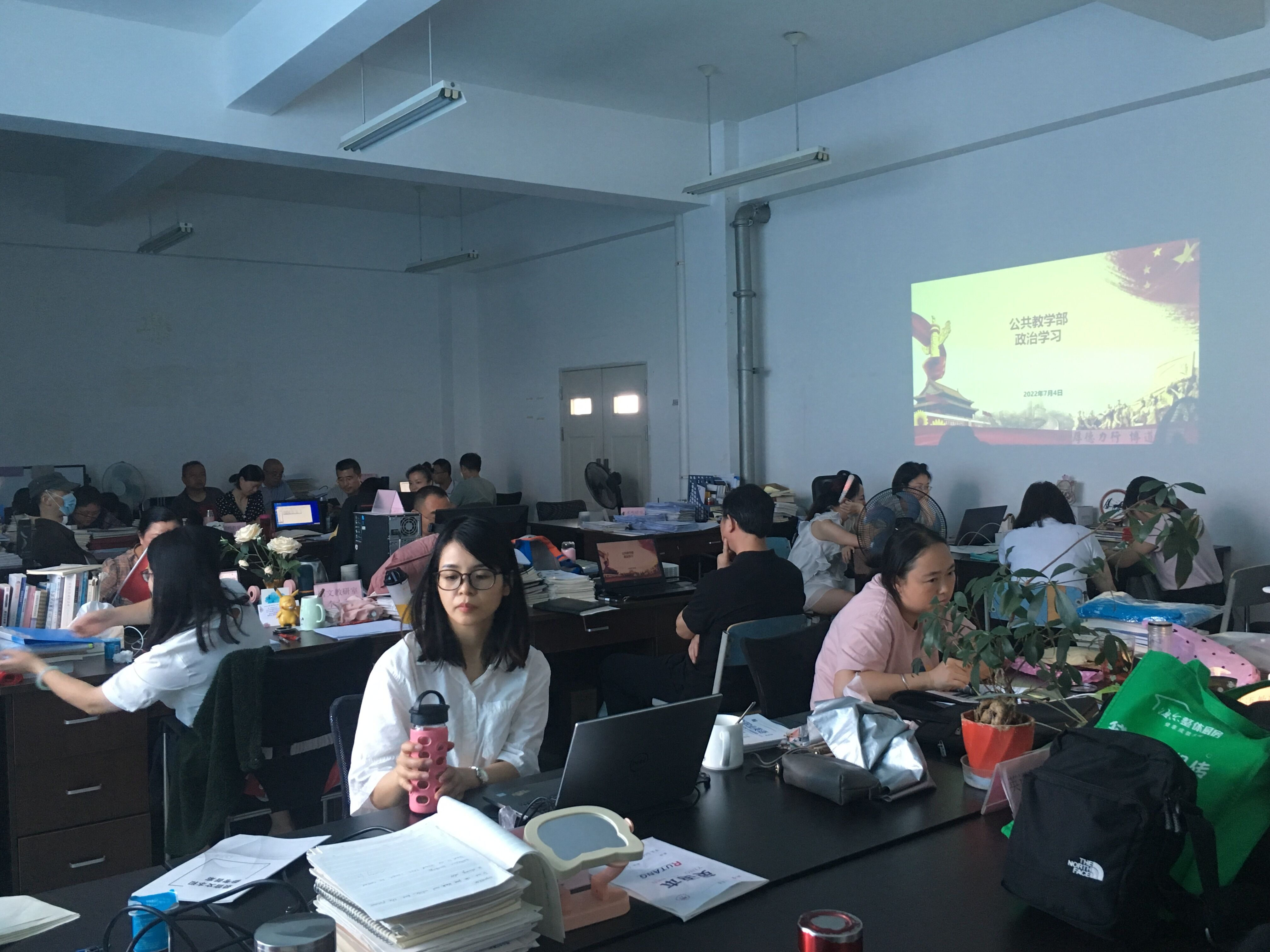 2022年7月4日下午,公共教学部组织召开了政治理论学习会议,会议由公教部副主任杨伦军和党支部书记刘媛主持,公教部全体教师参加了本次会议。