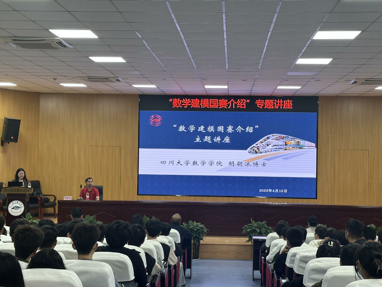 为了增强同学们对全国大学生数学建模竞赛的了解,开阔学术视野,激发同学们对数学建模的兴趣和积极性,鼓励大家积极参与竞赛。2023年4月10日下午四点,公共教学部数学教研室邀请了四川大学数学学院胡朝浪副教授为全校师生做了“数学建模国赛介绍”专题报告。本次讲座在学术报告厅进行,数学教研室全体教师与部分专业教师,及全校2022级各班级学生代表参加了本次讲座,讲座由公教部李小菲老师主持。