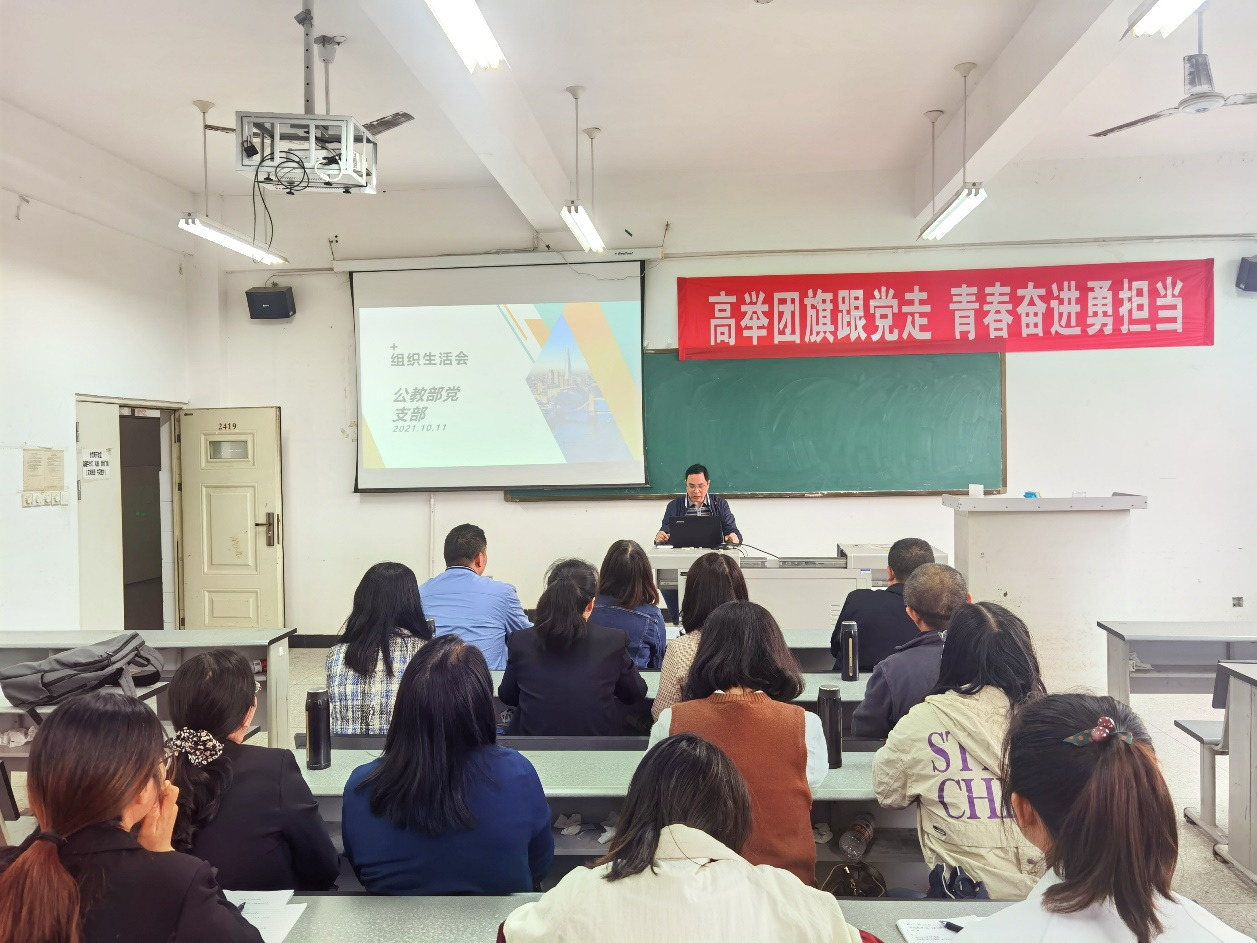 根据党委组织部关于10月组织生活会主题内容的要求,结合支部实际情况,公教部党支部于2021年10月11日下午,在2419教室召开了支部10月份的第一次组织生活会,会议由支部书记刘媛同志主持。