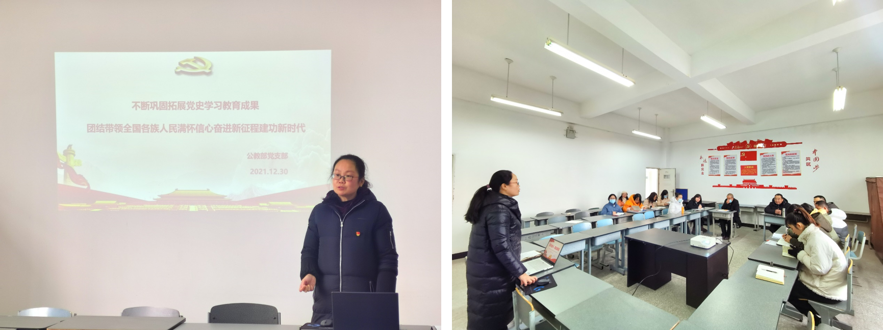 2021年12月30日下午,公教部党支部在2501教室召开十二月支部会议,会议由支部书记刘媛同志主持,杨伦军副主任列席。