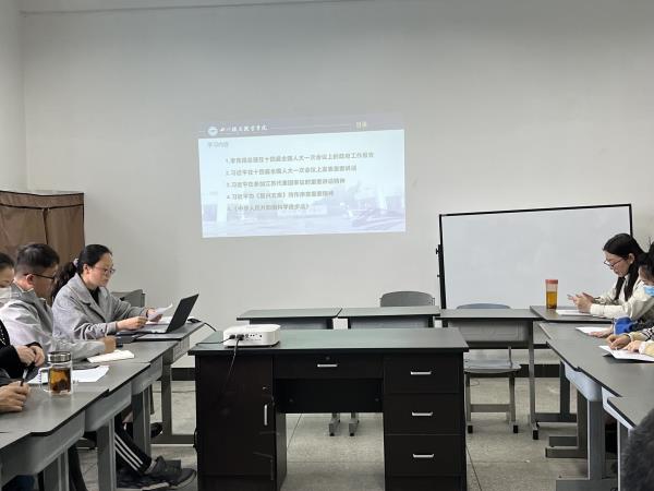 为深入学习贯彻党的二十大精神,根据中共四川省委宣传部和中共四川省委组织部对高校政治学习重点内容相关要求,结合学校党委组织部安排,4月3日,公共教学部于2501教室开展4月政治理论学习。学校组织部副部长姚思奇参与了学习活动,会议由公教部党支部书记刘媛主持。