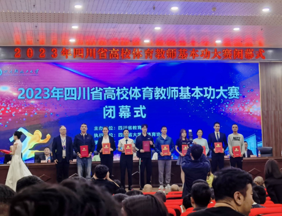 10月31日-11月2日,由四川省教育厅主办的2023年四川省高校体育教师基本功大赛在四川轻化工大学举行,本次比赛吸引了全省52所本专科院校近200名教师参赛。beat365体育教师勇敢拼搏、稳定发挥,最终荣获团体一等奖、个人一等奖等5项殊荣。