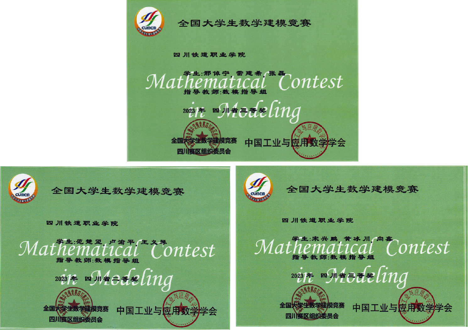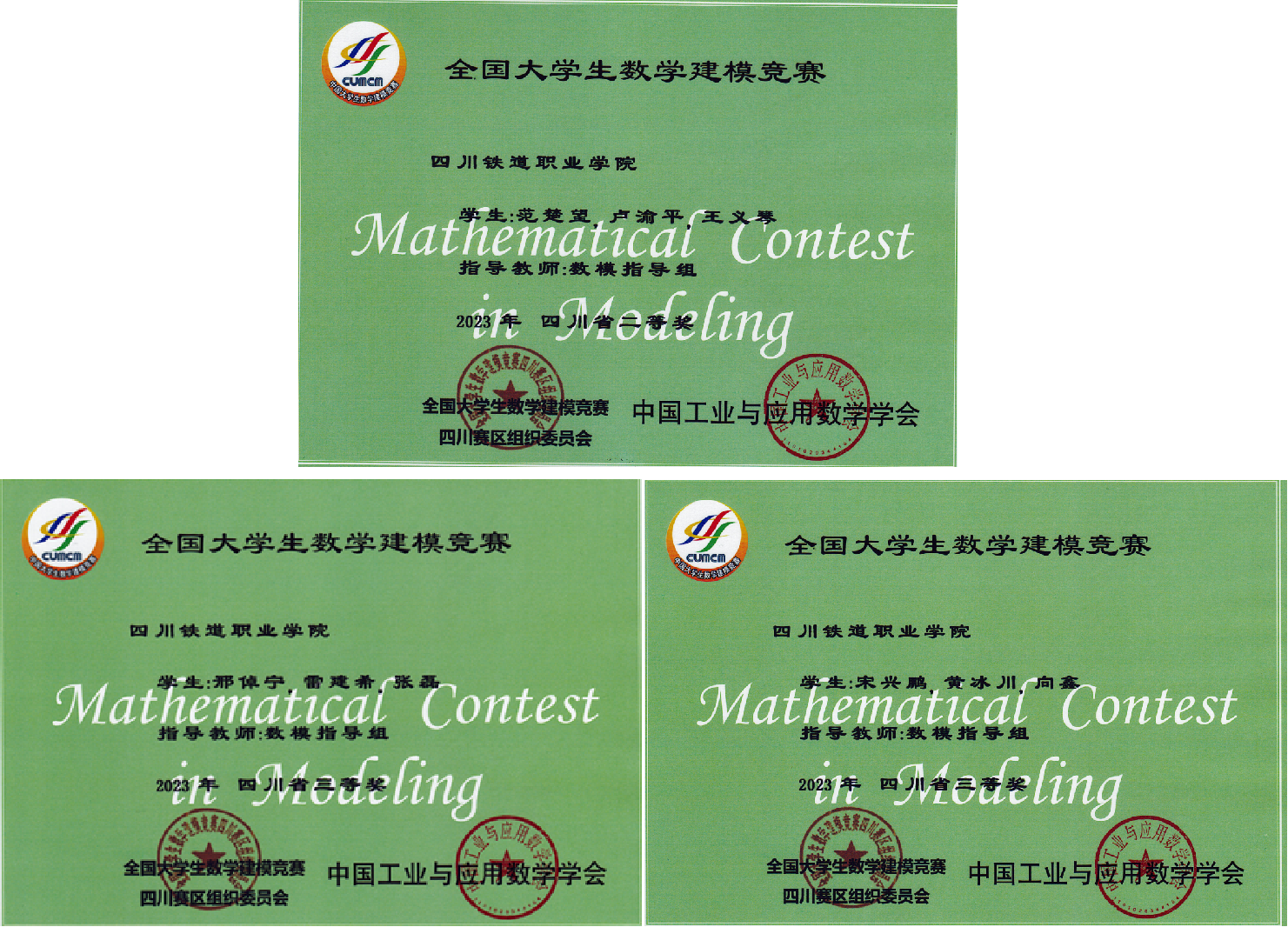 2023年全国大学生数学建模比赛于9月7日至9月11日举行,学校对此高度重视。公共教学部数学教师团队迎难而上,克服人手紧张、经验不足等困难,积极开展备赛工作。5月初宣传发动、组织报名,经过课余辅导、暑期集训、赛前模拟训练等层层磨砺,最终确定15名同学组成5支代表队与四川赛区大学本科、专科学生共2466支参赛队伍同台竞技。在长达四天三夜的比赛期间,队员们夜以继日、团结协作,beat3653支代表队终获优异成绩。