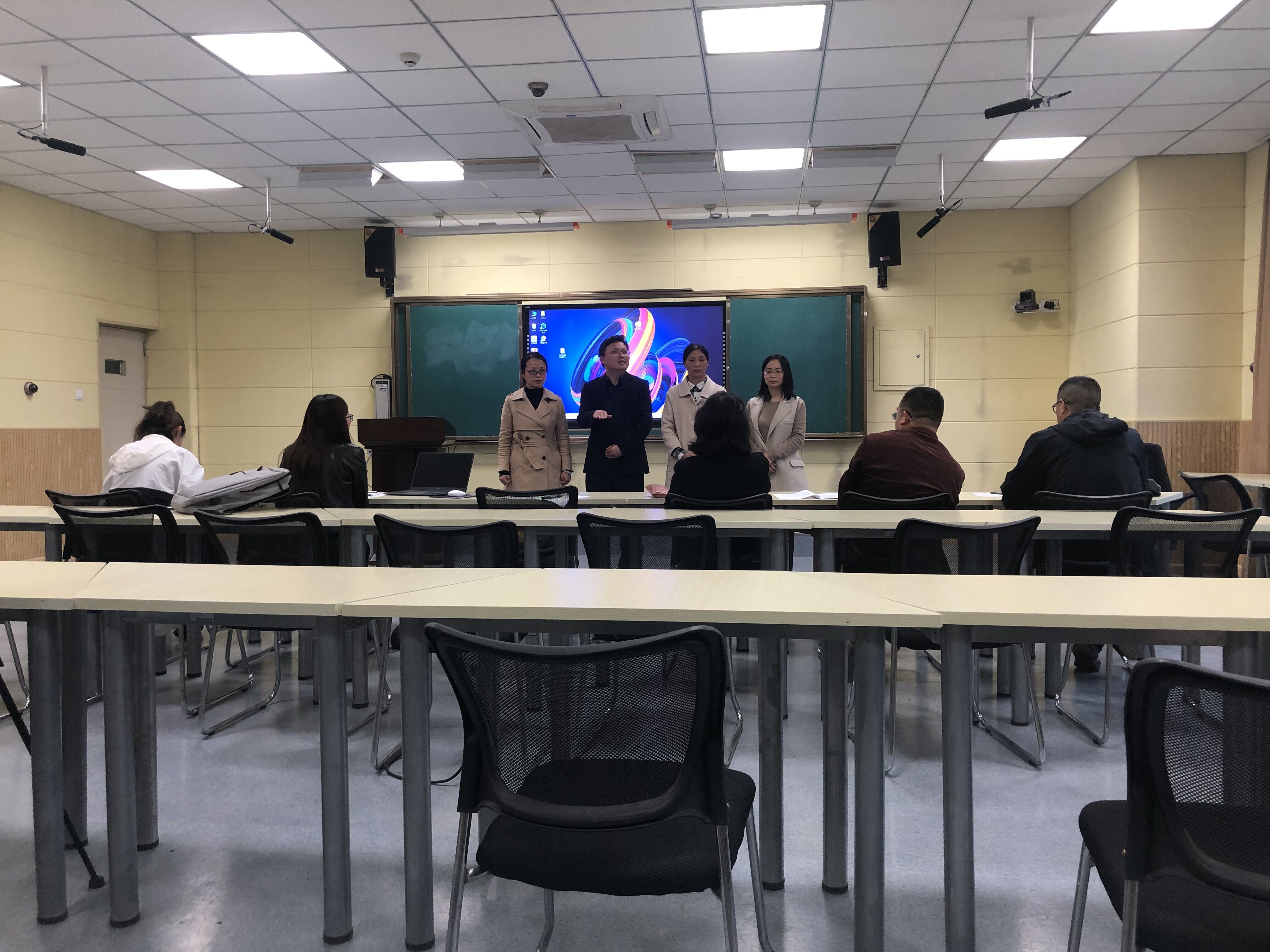 为全面贯彻全国、全会教育大会精神,落实国家职业教育改革实施方针,提升职业院校教师教学能力和信息技术应用能力,根据《四川省教育厅关于举办2021年四川省职业院校教师教学能力大赛的通知》和我院文件要求,2021年4月14日,公共教学部在1521教室举行2021年四川省职业院校教师教学能力大赛部门选拔赛。公教部主任颜静担任评审组长,教研室主任熊杰、瞿荣华、赵坤、徐安铜、廖小凤、何燕担任评委。经过阐述教学实施报告、讲课等环节,公教部选拔赛经公示审核,最终推荐《高等数学》课程团队和《国学概论》课程团队参加学院公共基础课程组分组选拔。