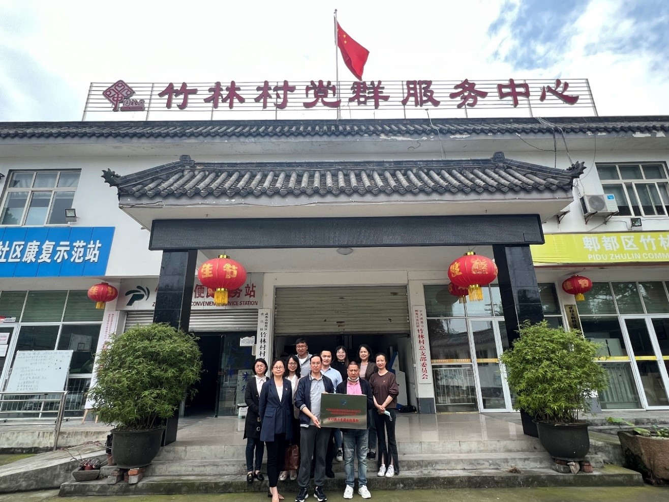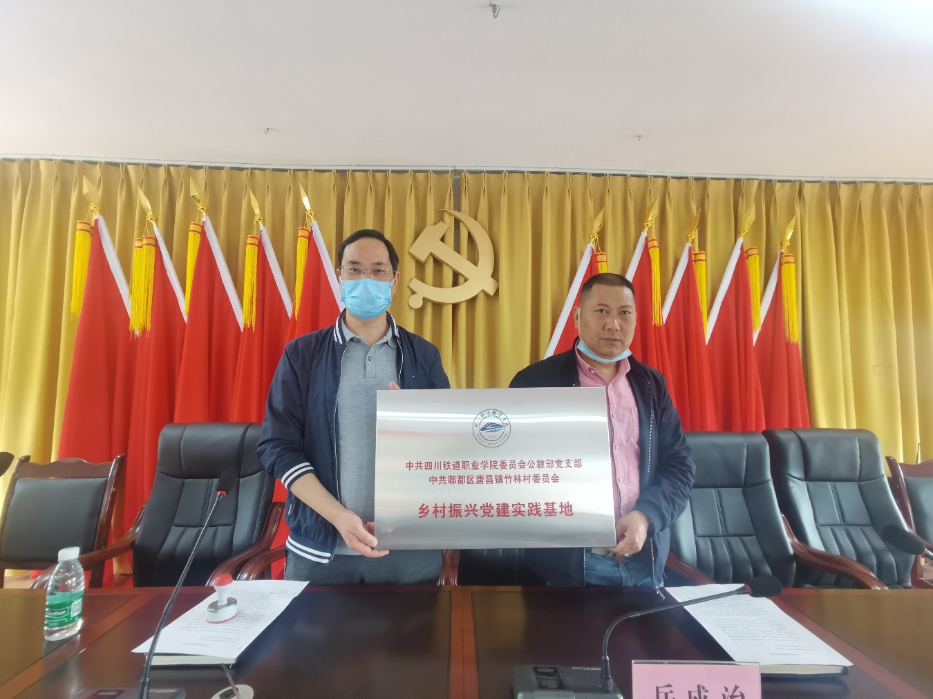 2022年5月19日下午,公共教学部副主任杨伦军,党支部书记刘媛一行11人前往成都市郫都区唐昌镇竹林村委员会签署乡村振兴战略合作协议,举行揭牌仪式并召开座谈会。