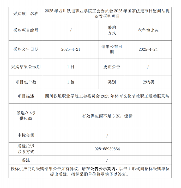 2025年国家法定节日慰问品提货券采购项目结果公告