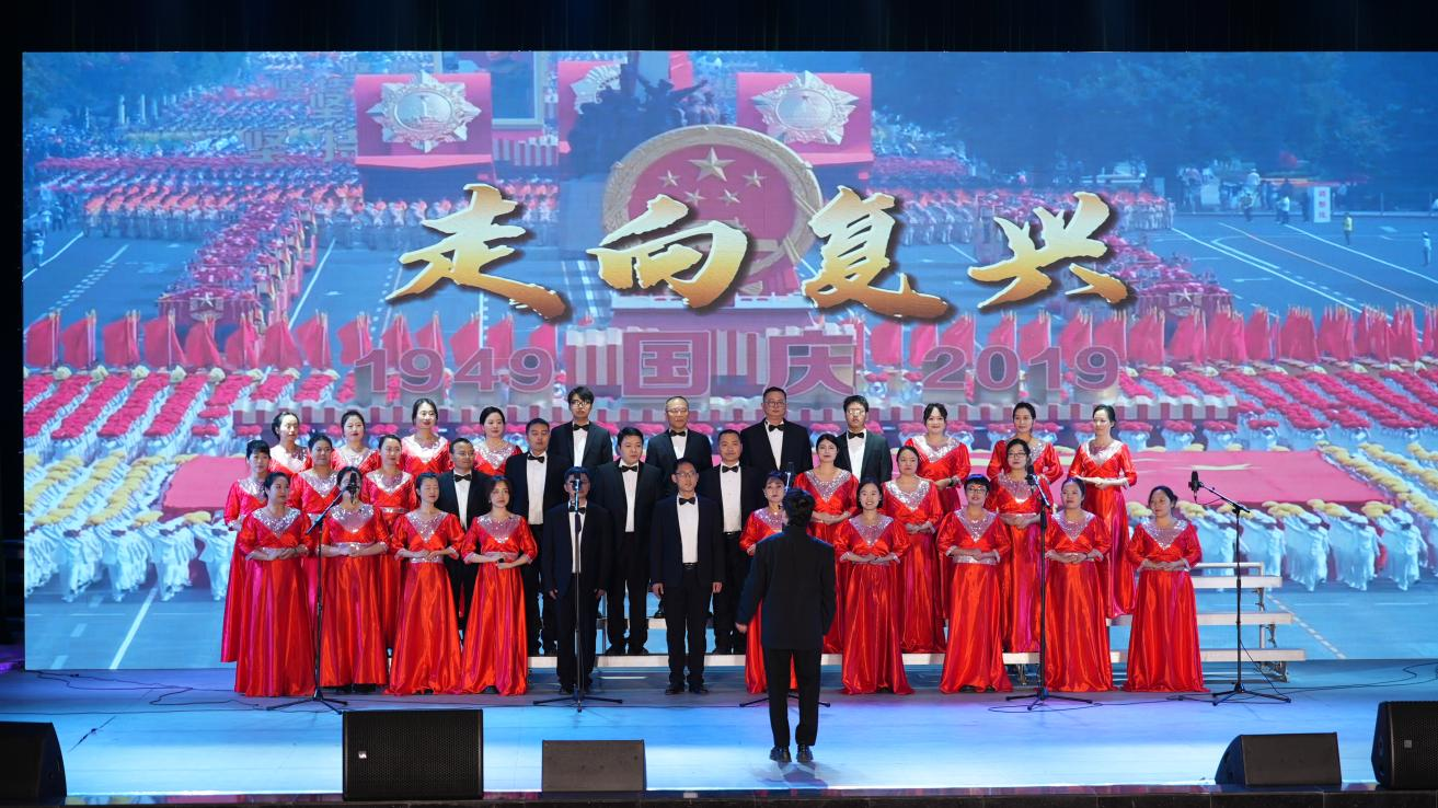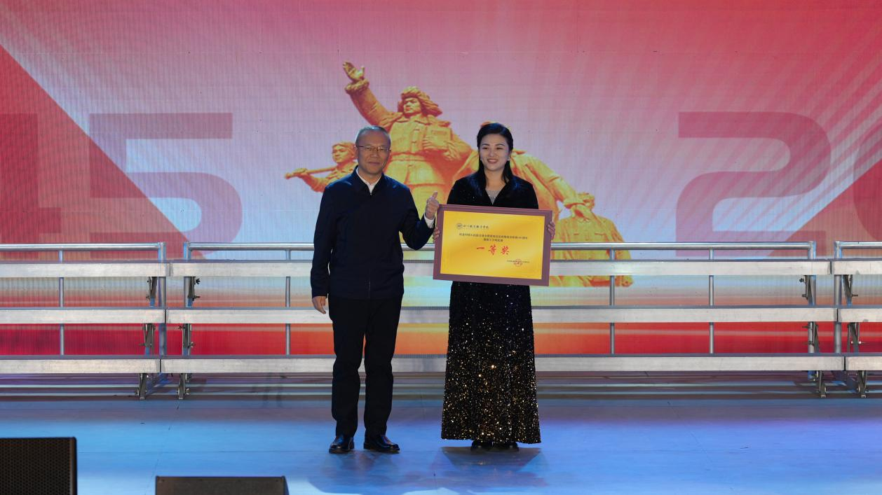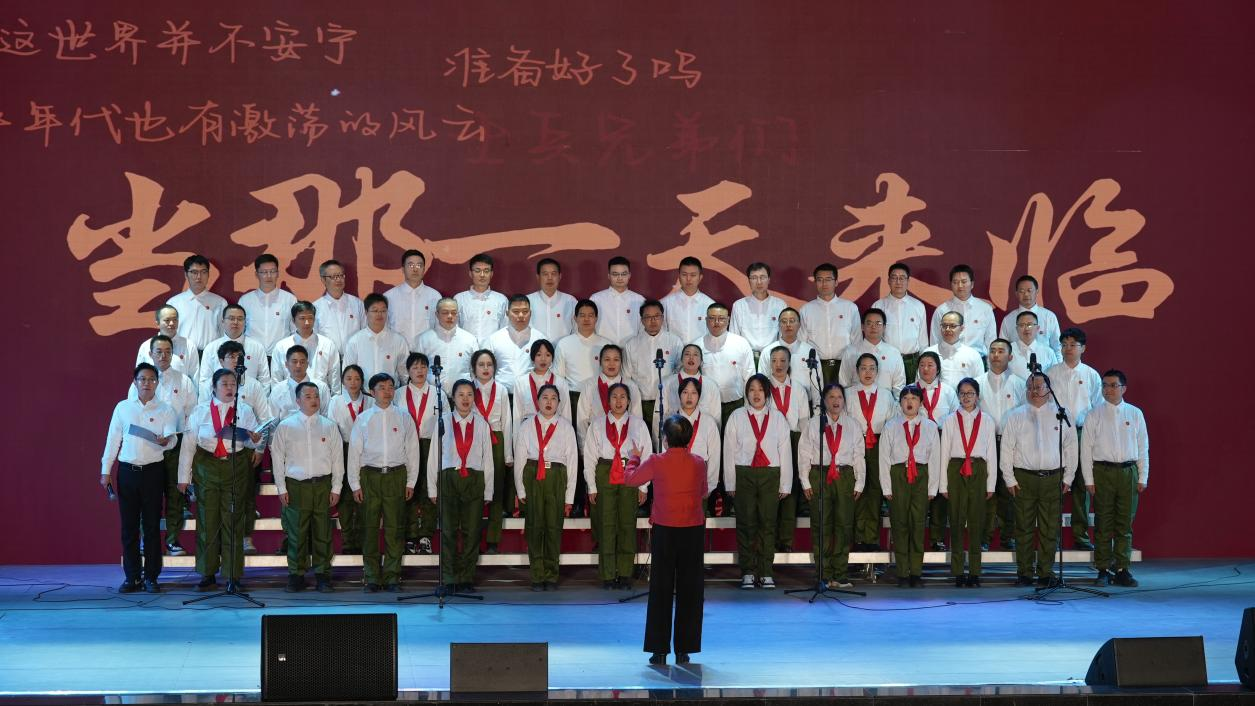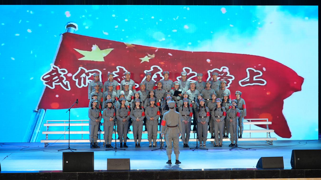 副校长王浩澂率领公共教学部分工会代表队演唱《抗日军政大学校歌》《再唱山歌给党听》