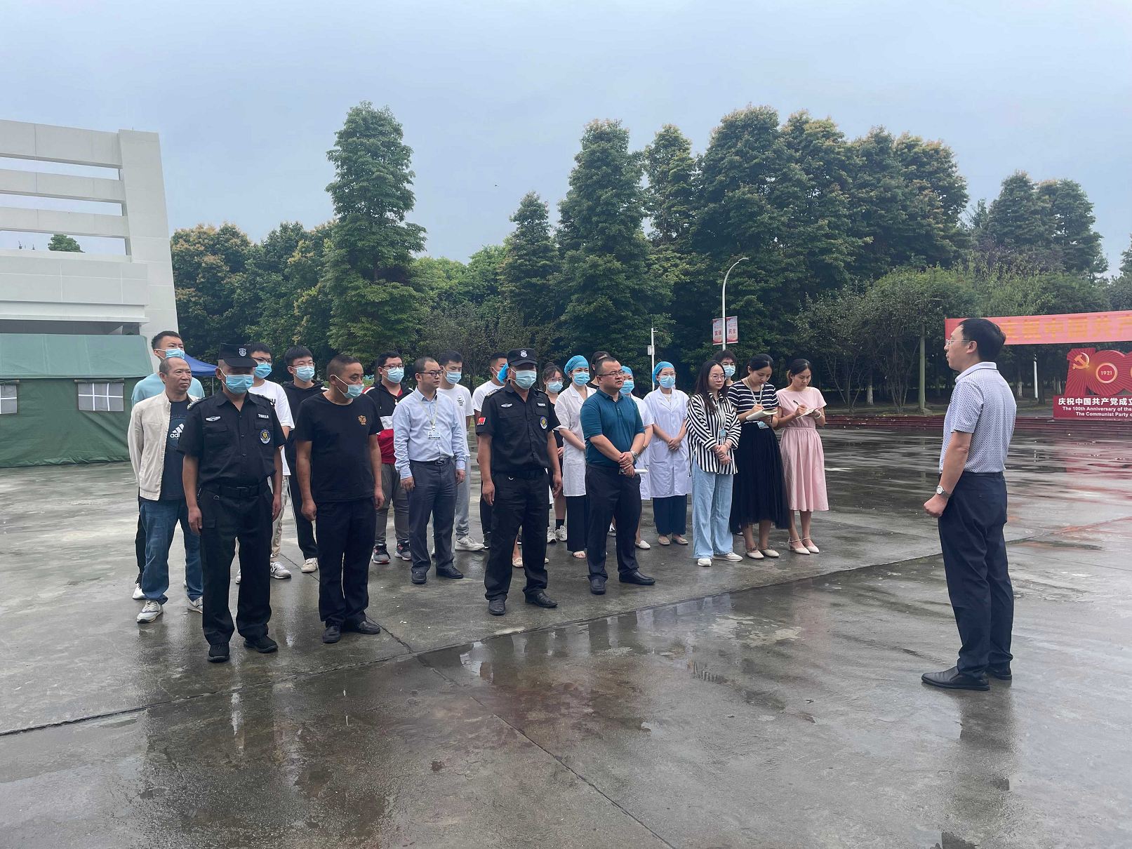 易刚副校长观摩演练,并结合演练情况对做好疫情防控和学生返校工作提出指导意见。相关职能部门负责人观摩演练,学校辅导员代表、部分学生参加演练。