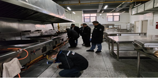 检查组对食堂燃气灶、管道、阀门及不锈钢波纹管等燃气设备设施运行情况进行了检查,通过“手持天然气检测仪”对天然气设备设施有无泄漏情况进行了检测,询问了各食堂组长燃气日常安全管理情况。检查组强调,要对用气环境、安全防范设施设备全方位排查整治,要充分认识燃气安全的重要性,加强燃气运行安全管理,吸取社会企业发生燃气安全事故的教训。