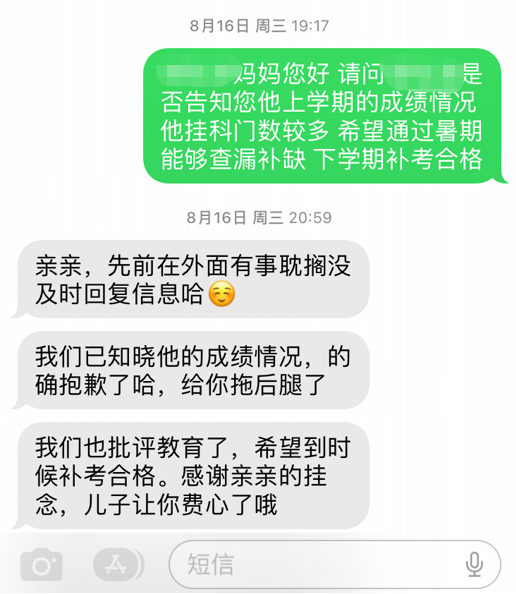 云家访活动中辅导员通过视频、电话、短信等方式与家长、学生们进行了亲切交谈。此次“云家访”活动,覆盖学院所有班级,了解36名困难学生状况,一方面,辅导员们在活动中分享学生的学习成绩、综合素质表现以及发展潜力,普及了学校相关的资助政策。另一方面,学生真心实意的吐露心声,家长也得以借此机会详细了解孩子在校园中的点滴。在家访的过程中,有不少的家长和学生表示:云家访是一次心与心的交流,在谈心谈话过程中,能真真切切的感受到学校的关心与温暖,家长们则有机会表达对孩子发展的期望和关切,辅导员也能更深入精准地制定个性化的教育方案,了解了被访学生的内心,有力地推动育人工作走深走实,更好地服务学生成长。
