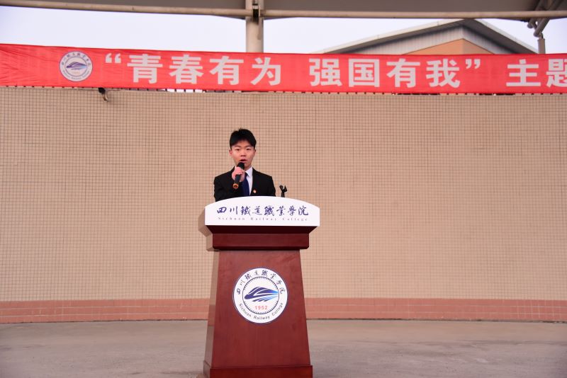 学生代表铁道机车运用与维护21T3陈冬就《青春践行二十大 挺膺担当新征程》做国旗下的讲话。作为班长、前学生会主席以及一名党的发展对象,陈冬结合个人在校三年实践经历分享收获感悟,提出三点倡议:一是期末临近,希望全体同学调整状态、认真备考、诚信迎考;二是要敢于跳出舒适圈,把握各类平台机遇,积极参与社会实践;三是要自觉增强历史责任感和使命感,努力成为有理想、敢担当、能吃苦、肯奋斗的新时代青年,为推进中国式现代化建设贡献青春力量。