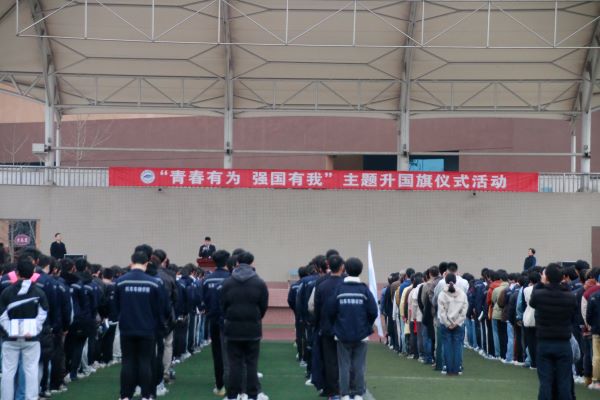 朝阳东升,破晓的黎明翻开新的篇章。机车车辆学院全体师生肃立在运动场上,参加本学期第一次升国旗仪式。庄严的国歌声响彻校园,国旗手迈着坚定的步伐,将五星红旗缓缓升至旗杆顶端。全院师生向国旗行注目礼,表达对祖国的无限热爱和崇高敬意。