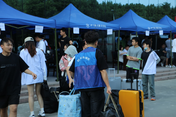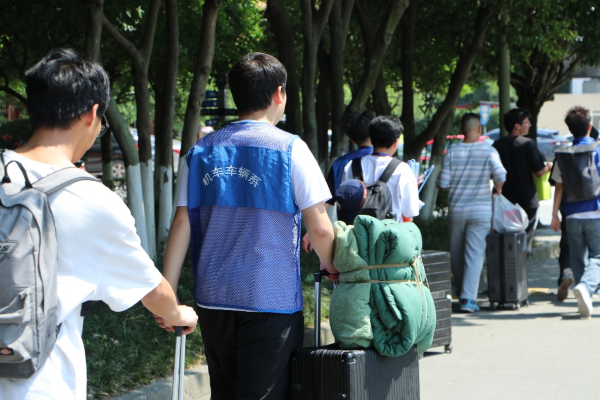 芳菲歇去何须恨,夏木阴阴正可人。初夏时节,由机车车辆学院负责的674名“2+1”培训学员满怀希冀进校学习。为顺利完成学员报道工作,学院为培训学员提供“一站式”服务:学院领导、辅导员、24名班主任以及学生党员严阵以待,深入了解学员情况,倾听学员需求,解答学员疑惑,高效完成报到工作;96名志愿者分工明确、热心服务,引导学员入校登记报到、按需领取解暑药品、运送行李物品、录入身份信息、办理校园一卡通等,解决学员后顾之忧。接引流程顺利且高效,志愿者们不辞辛劳,发扬了奉献、友爱、互助、进步的志愿精神。
