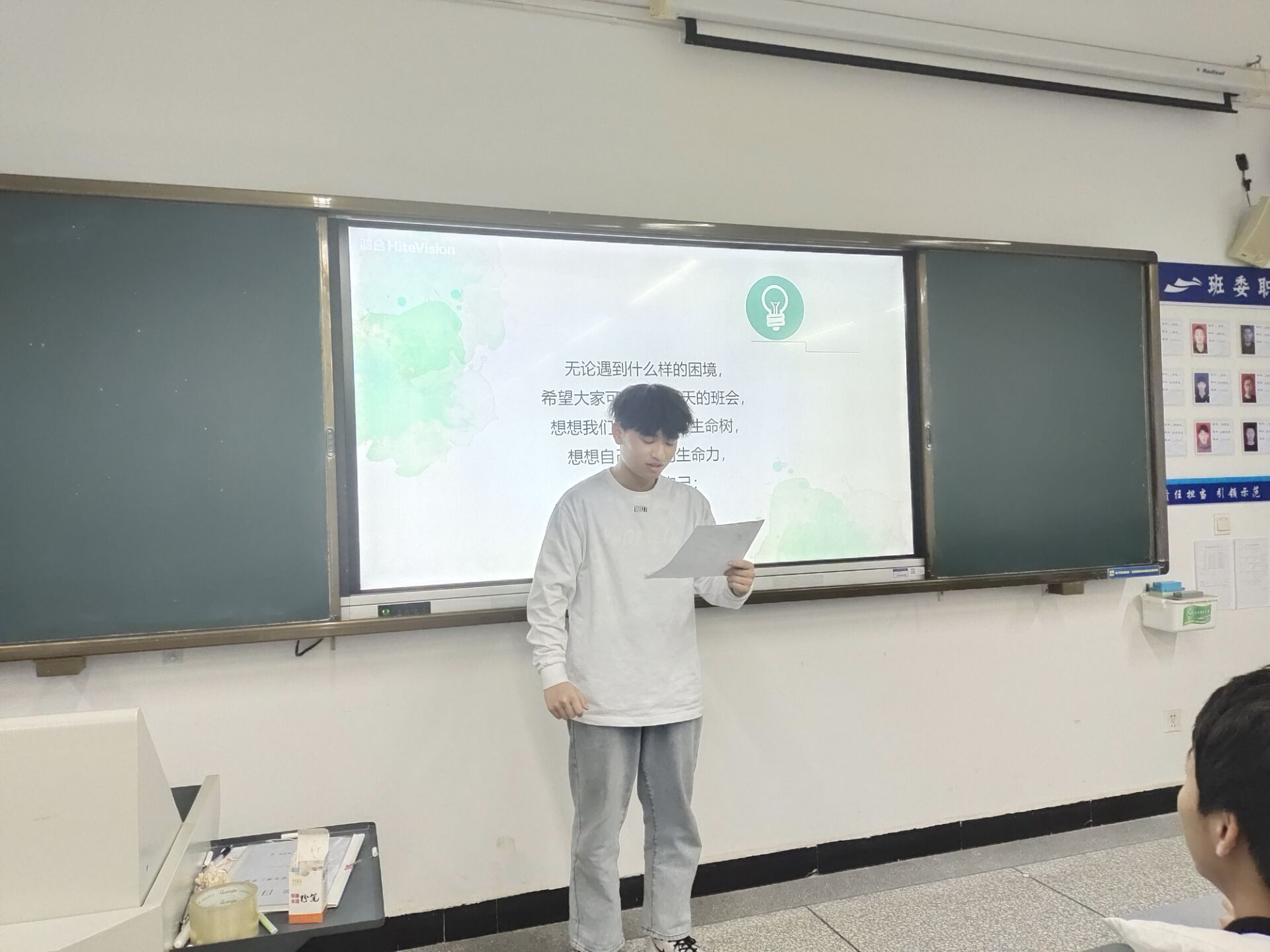 活动过程中,心理委员将全班分为几组,发出指令,引导同学们在彩色卡纸上按步骤绘制生命树。每一步结束后进行组内分享,并邀请3名同学分享。最后,全体同学将独立完成的生命树叠放在一起,放在地上摆放成“班级生命树”,心理委员总结本次班会,并合影留恋。