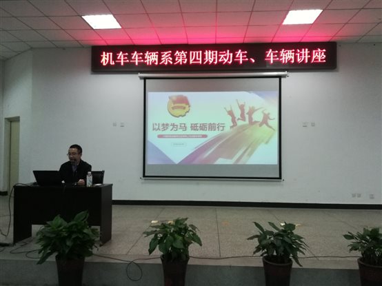 2019年4月3日,机车车辆系邀请中国铁路成都局集团有限公司成都车辆段团委书记李珂在学术报告厅做了题为“以梦为马,砥砺前行”的专题讲座,动车组检修技术、铁道车辆专业全体学生和部分老师代表聆听了讲座。