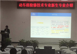 2020年11月16日下午机车车辆系动车组检修技术专业20级新生专业介绍讲座在学术报告厅展开,动车组检修技术专业20T1和20T2班级全部参加,动检教研室主任霍芳霄、专任教师孙小鹤、曹刚到场为学生进行专业介绍。与此同时,会议特邀成都动车段全国铁路青年岗位能手、全局技术能手、青年岗位能手同时也是全国尼红奖章获得者杨启义参加,并作主题演讲“高职生如何成为一名优秀的动车人”。