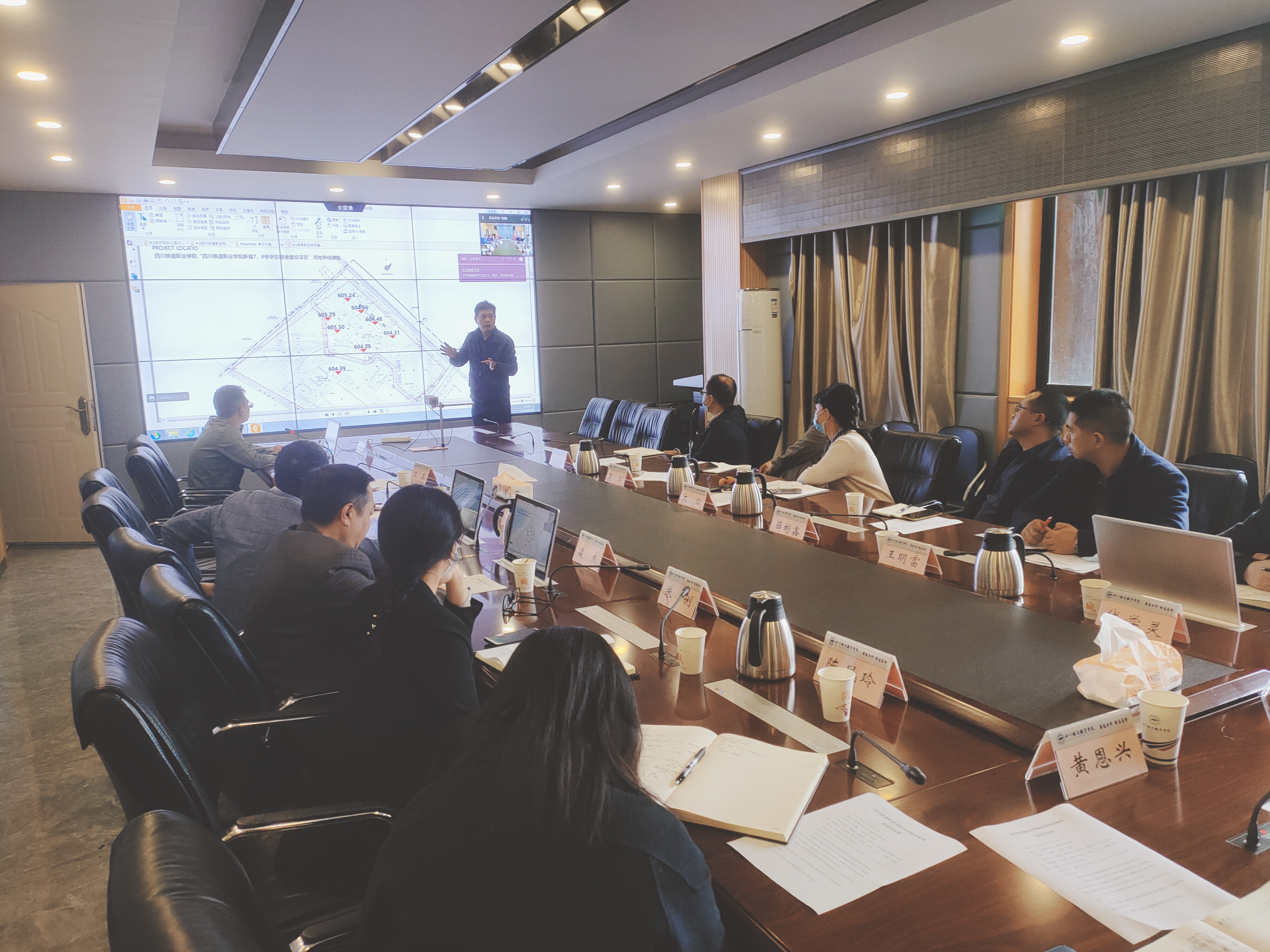 会上,副校长黄勇介绍了校园规划论证会目的和相关要求。基建处处长马麟介绍学校十四五基建规划情况,上级单位和行业主管单位对基建工作的相关要求,着重说明了十四五校舍建设的初步考虑,设计单位负责人以线上参会形式作了补充。