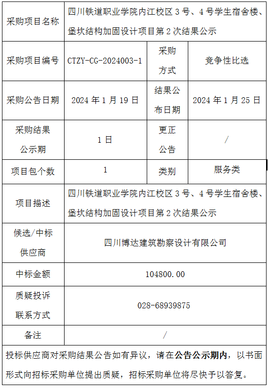 beat365英国官方网站内江校区3号、4号学生宿舍楼、堡坎结构加固设计项目第2次结果公示