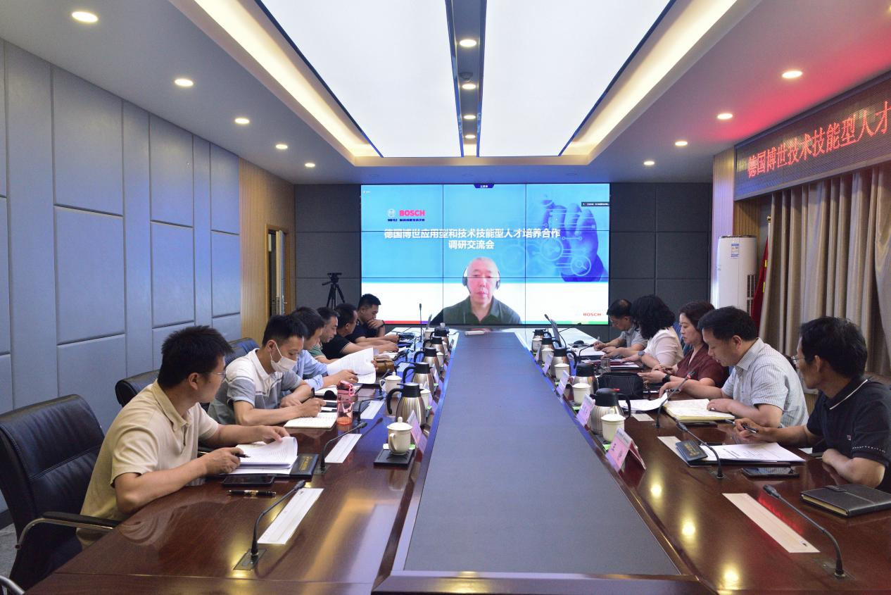 6月14日,德国博世应用型和技术技能型人才培养合作试点项目(下称“博世项目”)专家组张胜伟、付照洪、胡春雨、李露露与学校开展试点项目调研交流。学校校长赖芳、副校长黄恩兴、教务处处长陈风玲、科研处处长王静、电信工程学院院长肖尚辉等出席会议。会议采用线上方式进行,由陈风玲主持。