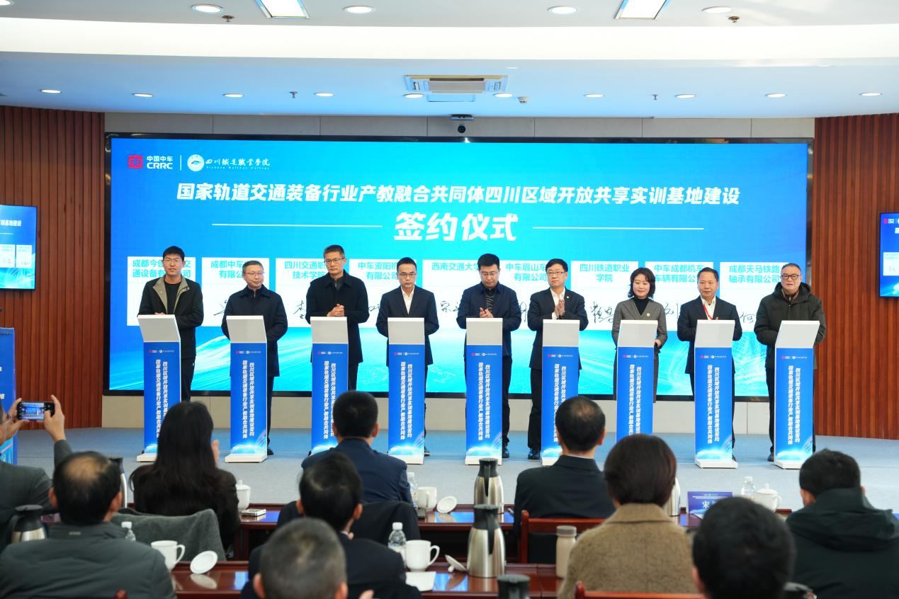 随后,西南交通大学、beat365英国官方网站、四川交通职业技术学院、中车成都机车车辆有限公司、中车眉山车辆有限公司、中车资阳机车有限公司、成都天马铁路轴承有限公司、成都今创轨道交通设备有限公司、成都中车电机有限公司等 9 家国家轨道交通装备行业产教融合共同体四川区域开放共享实训基地共建单位代表上台签约,标志着国家轨道交通装备行业产教融合共同体四川区域开放共享实训基地建设正式启动。