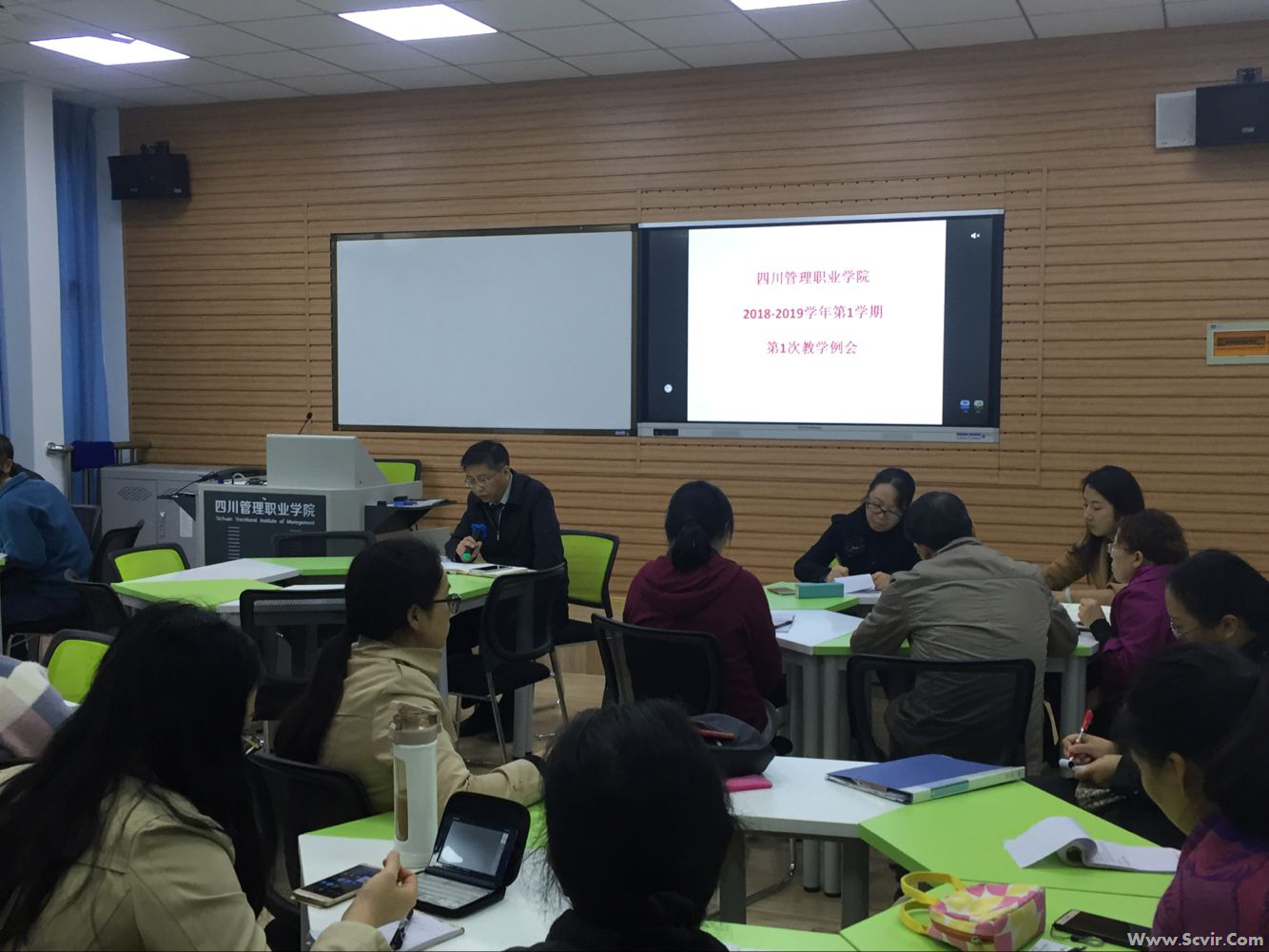 2018年10月17日下午,学院1211教室召开了2018-2019学年第一学期第一次教学工作例会,分管教学副院长吴斌同志主持会议,各系(部)、实训中心、评建办、教务处负责人和各教研室主任参加了会议。