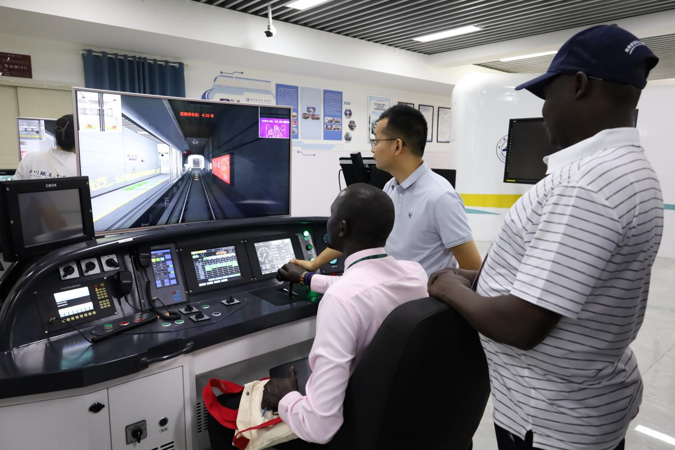 下午,研修班全体学员参观了学校高铁综合演练场、动车组驾驶人员资格考试模拟驾驶实作考点、城市轨道交通综合实训中心及复兴号高速动车模拟驾驶中心并亲自操纵、模拟驾驶。参观过程中,学员们对相关主题表现出浓厚的兴趣并就相关问题积极与讲解团队进行交流讨论。