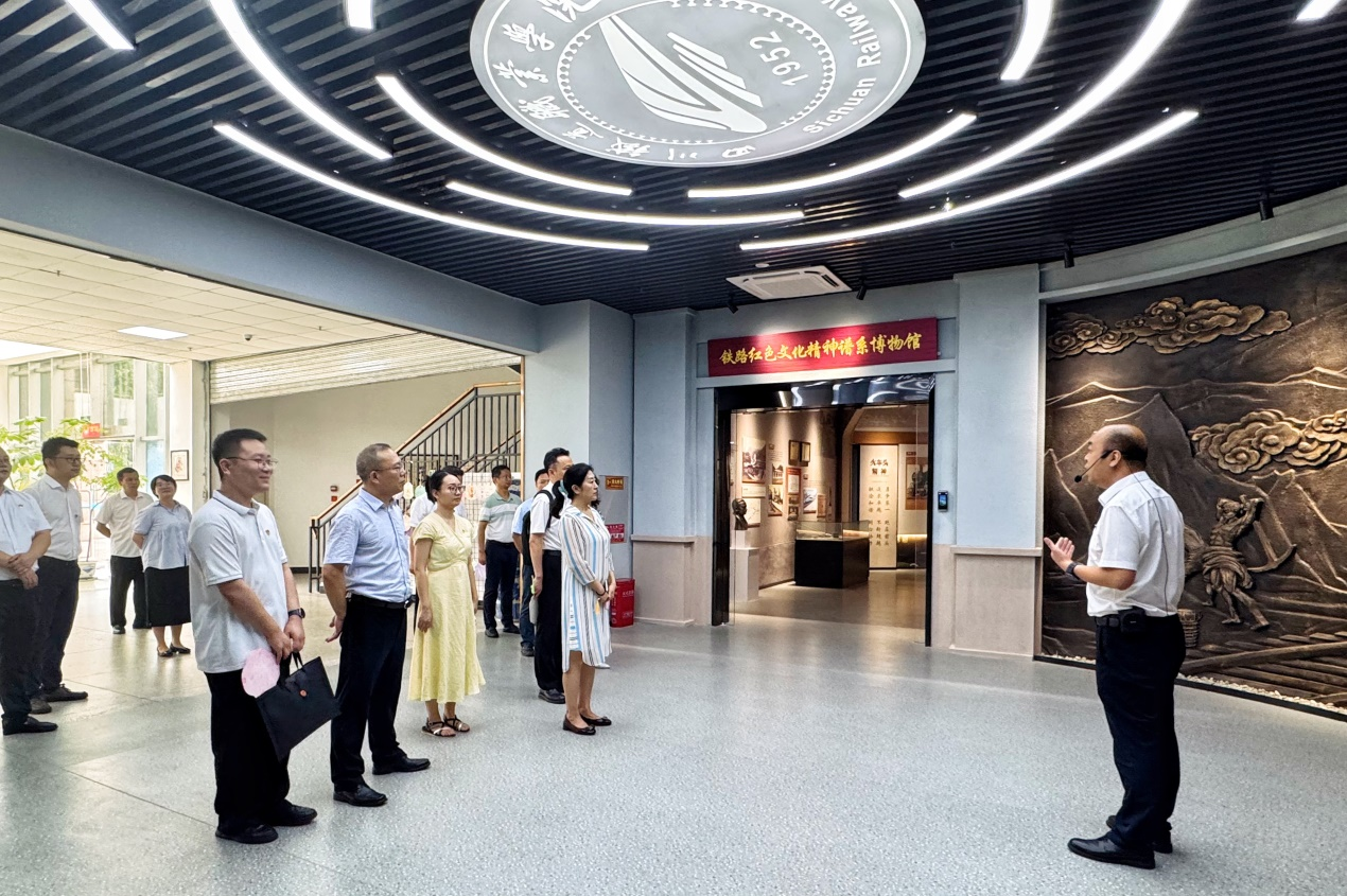 石静作了交流发言,她肯定学校这些年的发展。她指出,学校紧跟国家交通发展战略,把职业教育开展得生机勃勃、昂然向上,特别是在市域产教联合体、开放型区域产教融合实践中心取得了不错的成绩。希望学习深耕铁道职业教育,做到“强基厚本”,铆足力气“真干、实干、拼命干”,在铁路职业教育上取得更大成绩。她还关心学校内江校区的发展,调研了学校人才培养情况。