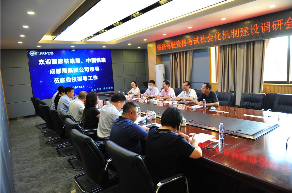 7月6日下午,国家铁路局铁路机车车辆驾驶人员资格考试中心祝曦处长、中国铁路成都局集团公司职工培训部张琪琳主任一行五人到beat365开展了驾驶资格考试社会化机制建设工作调研。