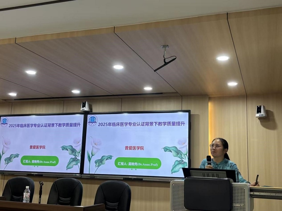 2025年9月11日下午,普爱医学院在明德楼北905室成功举办“临床医学专业认证背景下教学质量提升”专题分享会。本次活动旨在深入贯彻落实国家高等医学教育政策要求,扎实推进临床医学专业认证迎评工作,进一步推动医学教育内涵建设与人才培养质量提升。普爱医学院、附属第一医院及第二医院60余名骨干教师参会,会议由普爱医学院副院长王乐主持。
